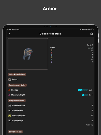 MHR Guide'in özel özellikleri arasında ekipman önerileri, ekipman yönetimi ve tılsımların kaydedilmesi yer almaktadır. Ekipman önerileri, seçilen yetenekler ile uyumlu zırhları ve süslemeleri bulmayı kolaylaştırır. Kullanıcılar ayrıca, kişisel ekipman setlerini oluşturabilir ve bu setlerin beceri ve istatistiklerini inceleyebilirler. Oyun verileri bölümü, canavarlar, silahlar, zırhlar ve beceriler hakkında detaylı bilgi sunar.